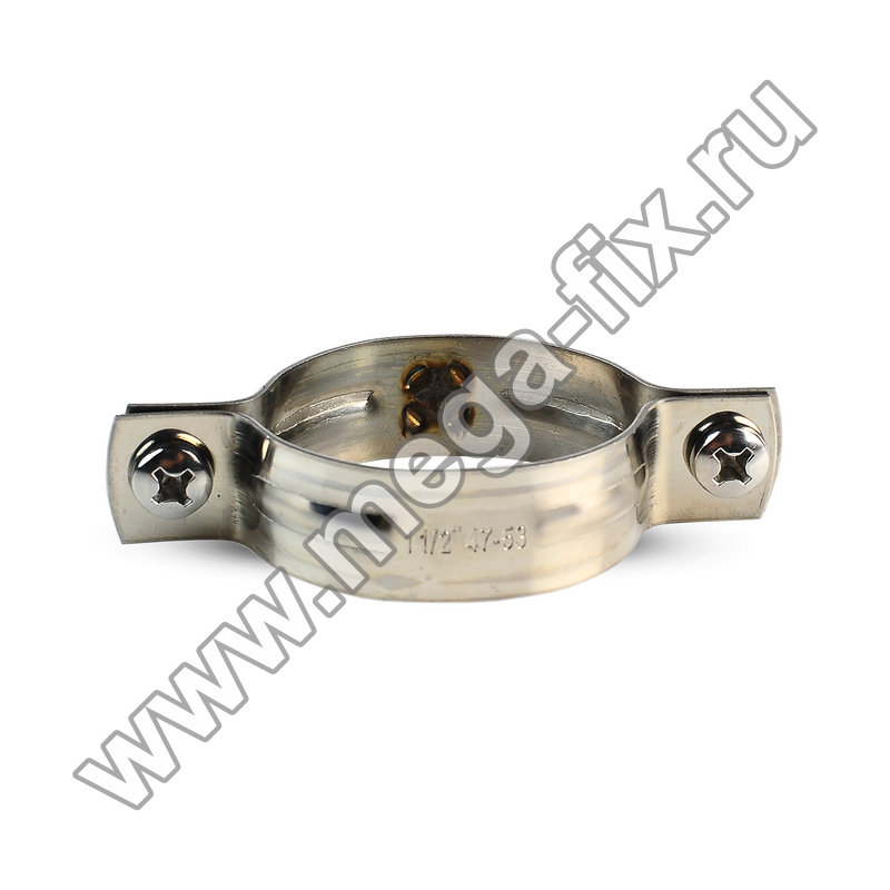 Хомут трубный нержавеющий с 1 гайкой 47-53 мм, 1 1/2", M10, AISI 304 mega-fix